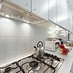 Dieses Apartment bietet seinen Gästen die Annehmlichkeiten von Selbstversorgern, wie eine voll ausgestattete Küche und einen Essbereich.